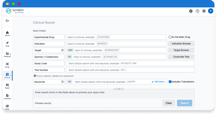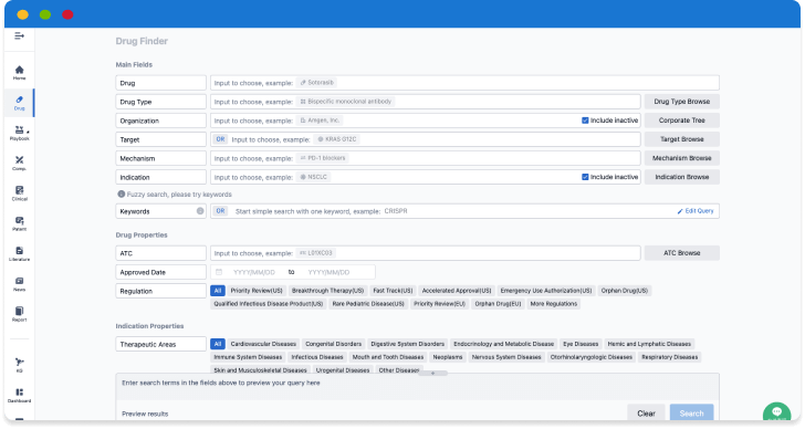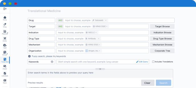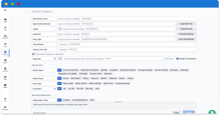 我们先进的临床试验搜索功能,依据干预药物、赞助商/合作者、目标、适应症、试验编号、标题、研究状态、研究阶段、注册等过滤器,可以有效地查找出特定试验。这个直观的工具使研究变得更加容易,而且提供全面的临床试验数据,帮助您快速定位您的目标临床信息。